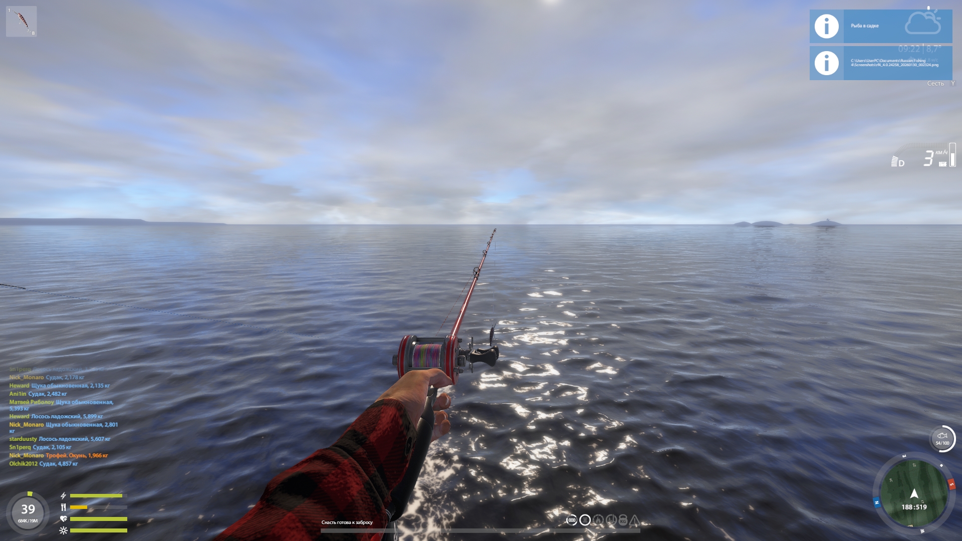 Comment: I trolled along the 27th bank, sometimes swam up to the 18th (at about there I caught an Atlas and Ladoga sturgeon). Pike, zander and trout are moving confidently, but there were few trophies in the chat.