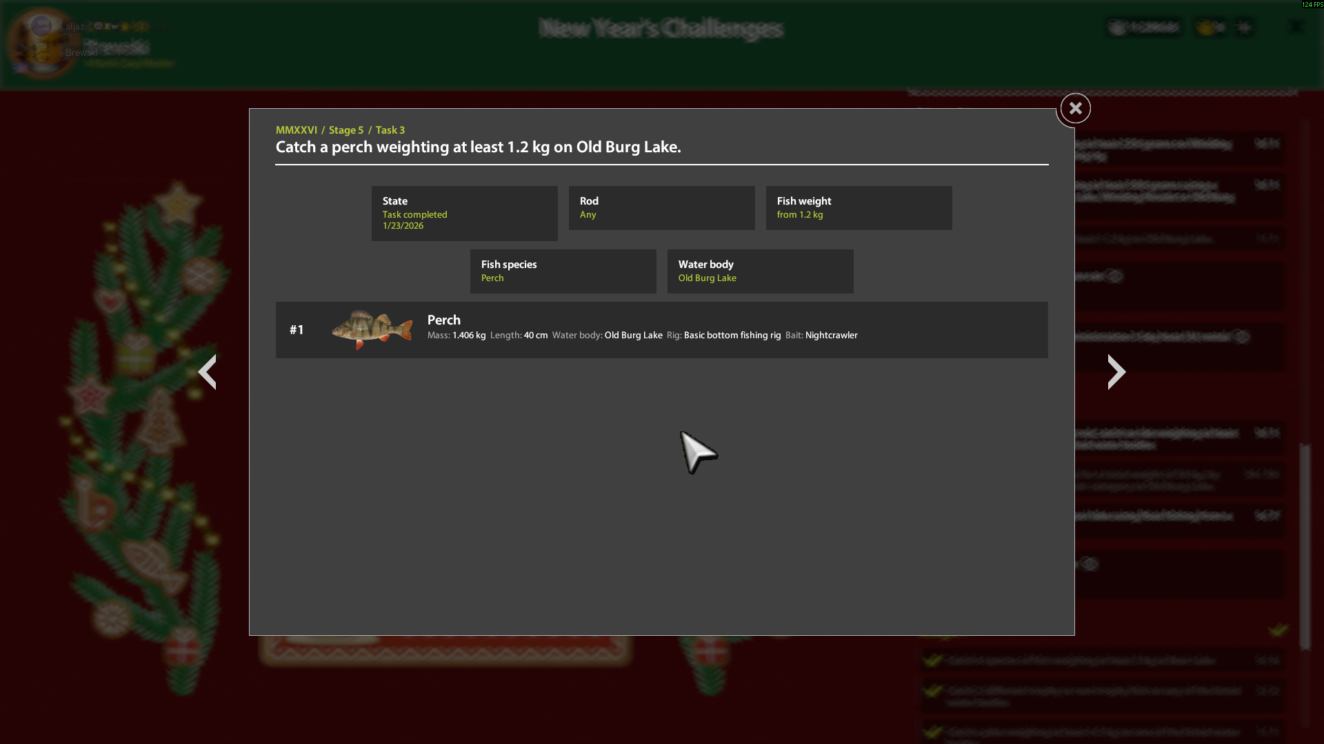 New years challenge stage 5 task 3. 1.2kg perch.
