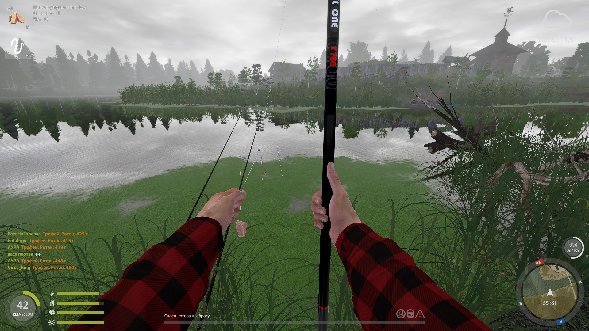 🎣 Max depth 1 m, cast 35-40%