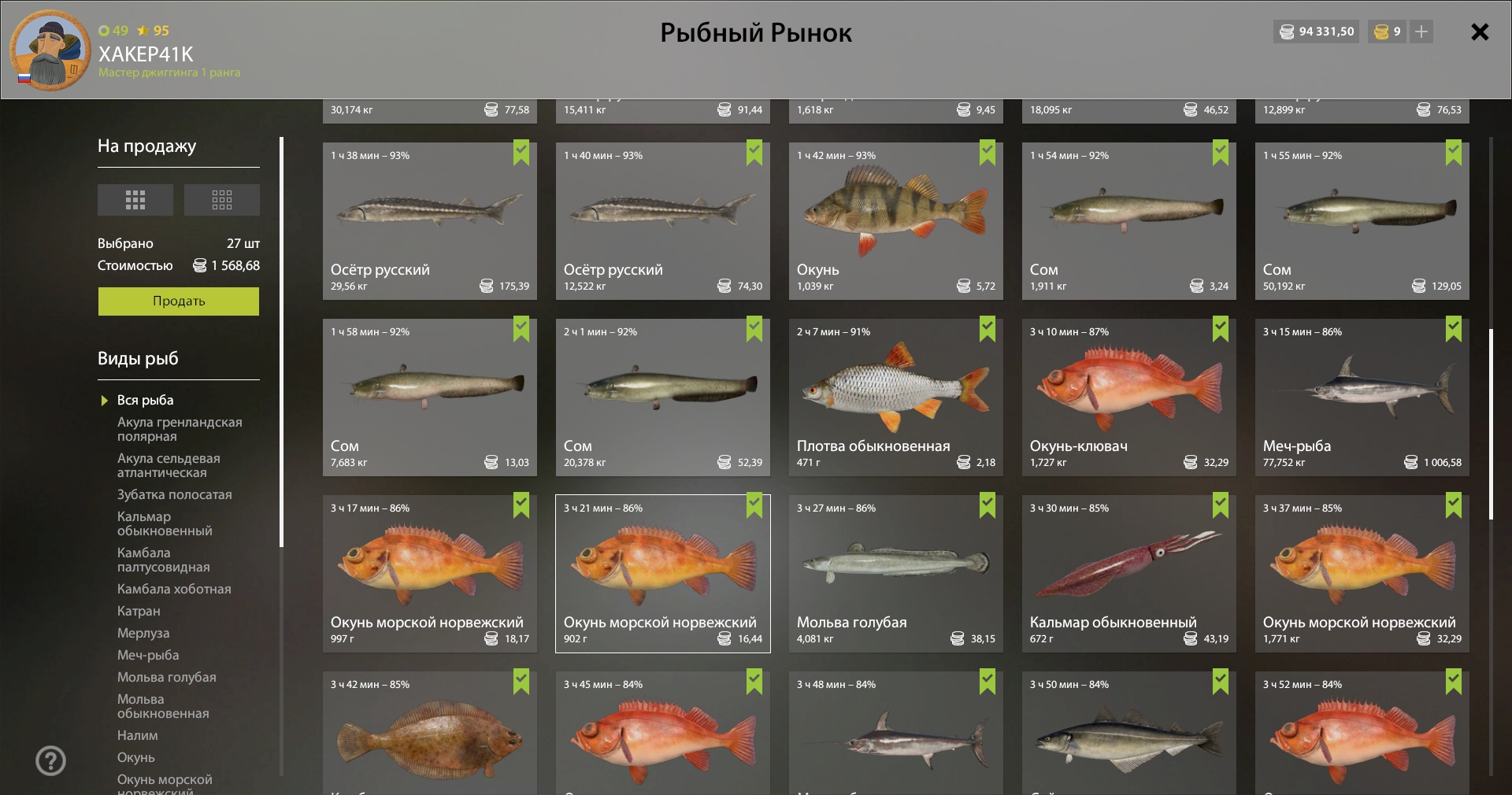 🐟 Russian sturgeon (qualified), Catfish (qualified)