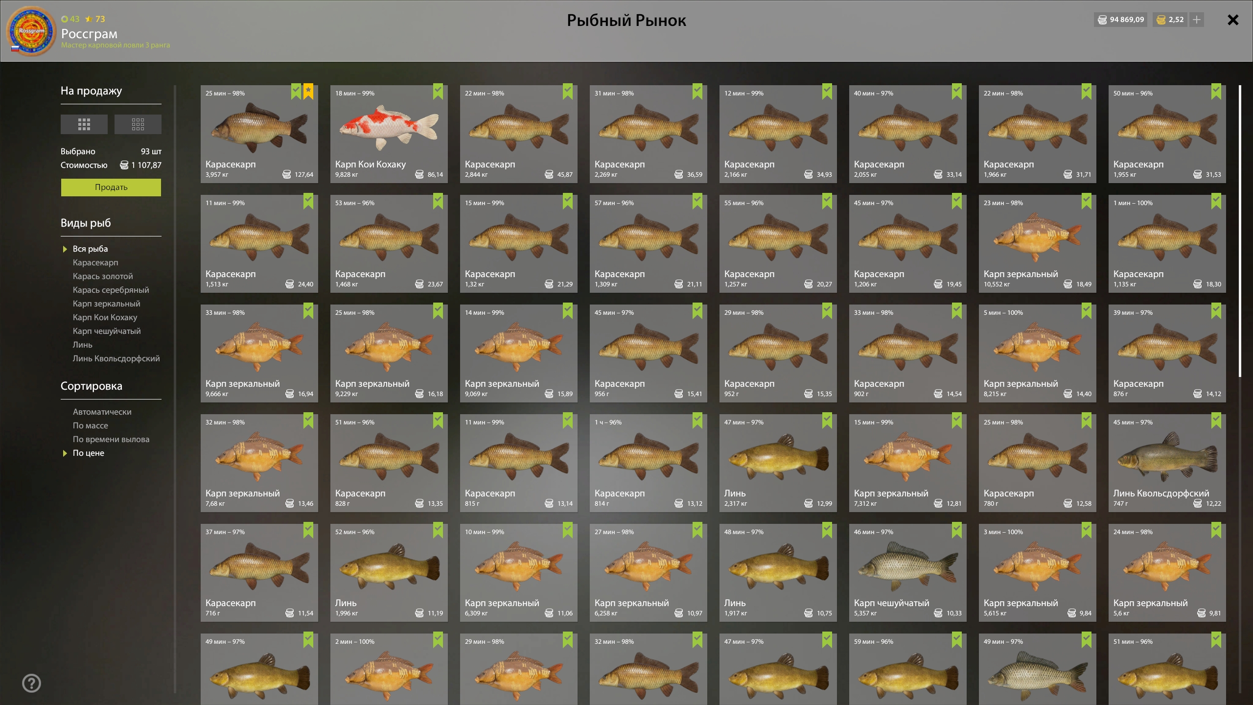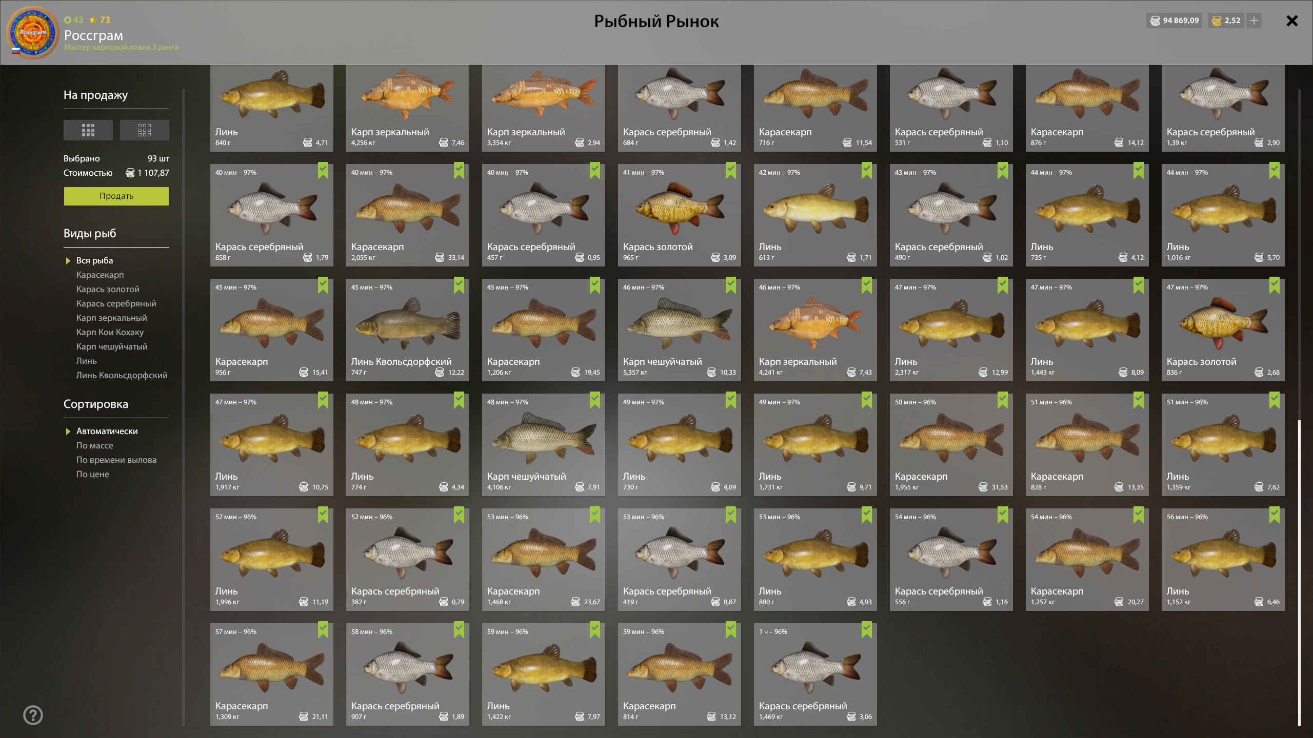 🐟 Fish: Karasekarp (trophy) + farm